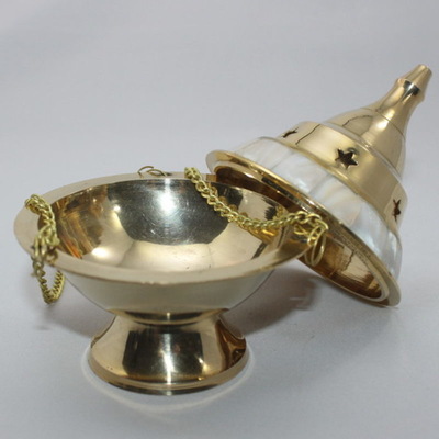 Hanging Incense Burner - Brass with Mother of Pearl and Stars